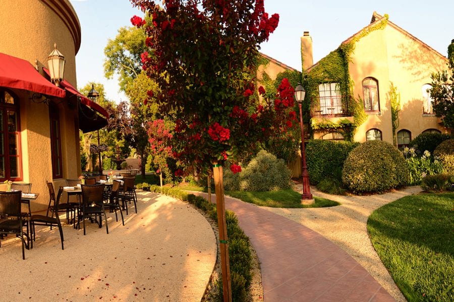 The Wedding Tower is a beautiful architectural backdrop for your wedding pictures. It is the entrance to Vintners Resort Event Center. The 30′ feet high European style structure features natural stone and a massive clock. Under the tower bells will ring on the hour and after a wedding ceremony.